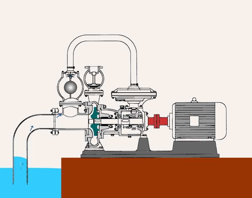 自吸泵就业道理:水泵启动前先正在泵壳内灌满水(或泵壳内本身存有水)。启动后叶轮高速挽回使叶轮槽道中的水流向涡壳,这时入口造成真空,使进水逆止门掀开,吸入管内的气氛进入泵内,并经叶轮槽道来到外缘。另一方面,被叶轮排到气水分袂室中的水又经操纵回水孔流回到叶轮外缘。左回水孔流回的水正在正在压力差和重力的影响下,射向叶轮槽道内,并被叶轮击碎,与吸入管道来的气氛混淆后,甩向蜗壳,向挽回宗旨滚动。然后与右回水孔流来的水汇合,顺着蜗壳滚动。因为液体正在蜗壳内一贯冲锋叶栅,一贯被叶轮击碎,就同气氛剧烈搅拌混淆,天生气水混淆物,并一贯地滚动以致气水不行分袂。混淆物正在蜗壳出口被隔舌剥离,沿短管进入分袂室。正在分袂室内气氛被分袂出来,由出口管排掉,而水仍经操纵回水孔流向叶轮外缘,并与吸入管气氛相混淆。如许一再轮回,慢慢将吸入管道中的气氛排尽,使水进入泵内,实现自吸经过。